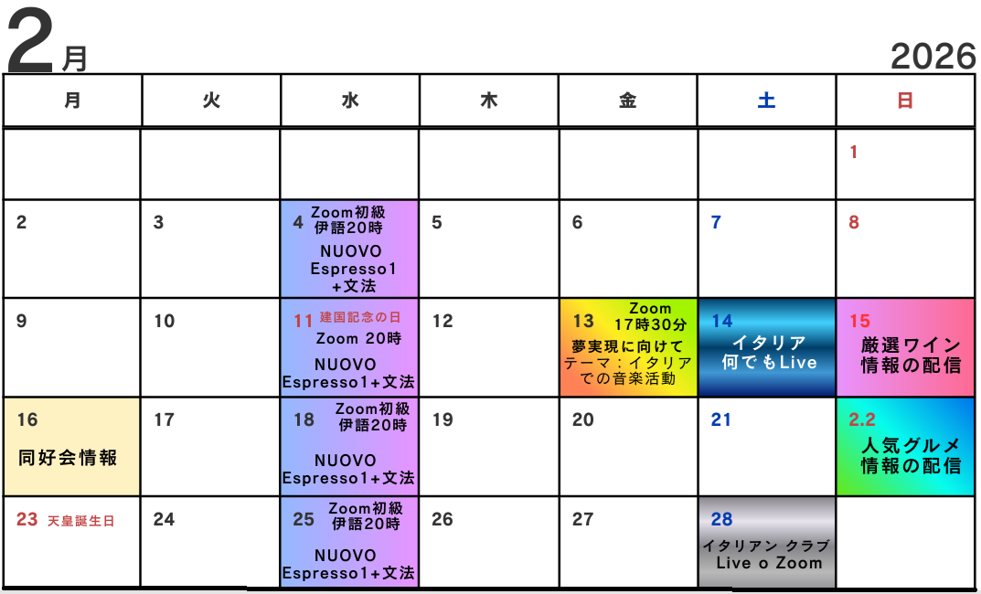 ITALIAN CLUB は、イタリア文化・語学・食の魅力を多角的に楽しめるオンラインサロンです。水曜20時開催の「イタリア語初級文法」や「NUOVO Espresso1_初級クラス」のレッスンでは、フィオレンツァ先生が日本語でわかりやすくイタリア語をお教えします。加えて、厳選のワイン情報と人気のグルメ情報を発信します。また、イタリアの生産者と直接つながり、特別価格での購入や送料シェアができるのも魅力。